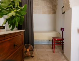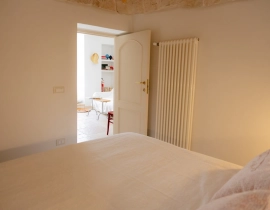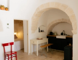 Tauchen Sie ein in ein wunderschön erhaltenes Stück Geschichte. Der Trullo vereint traditionelle Steinarchitektur mit einem klaren, modernen Stil. Er bietet Platz für bis zu 3 Gäste und verfügt über ein komfortables Doppelzimmer sowie ein gemütliches Einzelbett in einer traditionellen Nische. Zusätzlich gibt es einen entspannenden Wohnbereich und ein modernes Badezimmer mit ebenerdiger Dusche.