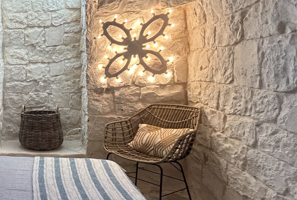 Der Trullo bietet eine ruhige Umgebung mit freundlichen Nachbarn und liegt gleichzeitig ideal zwischen zwei der bezauberndsten Städte der Region: Ostuni– der berühmten „Weißen Stadt“, bekannt für ihre strahlende Altstadt und Panoramablicke und Ceglie Messapica– einem gastronomischen Zentrum, das für seine authentischen Restaurants, charmanten Geschäfte und die wunderschöne Altstadt bekannt ist.