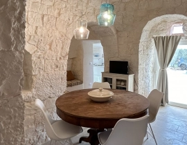Entdecken Sie den einzigartigen Charme Apuliens in diesem restaurierten Trullo-Ferienhaus, das rustikale Authentizität perfekt mit modernem Komfort verbindet. Eingebettet in ein privates Grundstück mit Mandel-, Oliven- und Obstbäumen bietet dieses gemütliche Refugium ein erholsames Erlebnis für 4 Gäste.